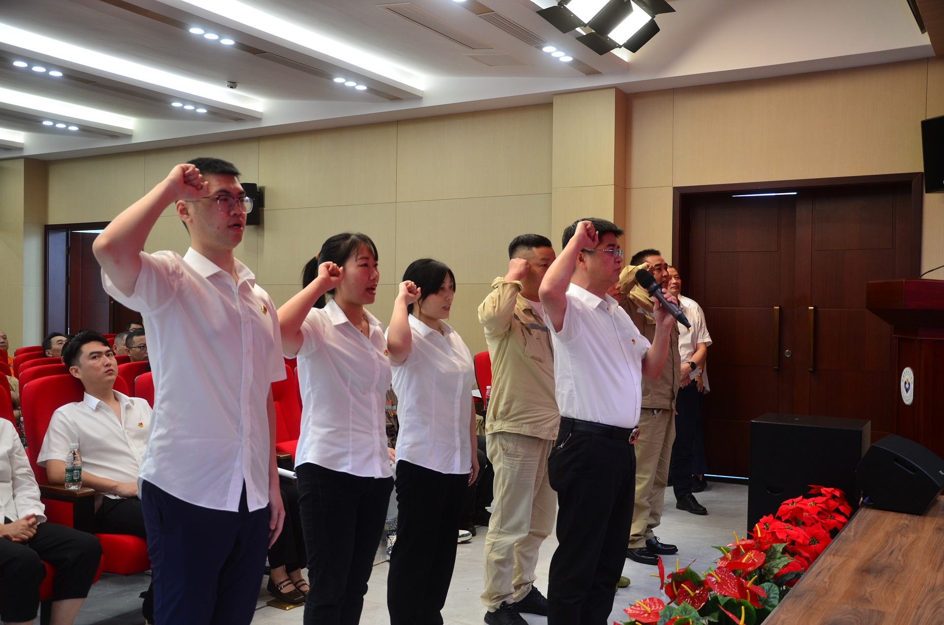 預備轉正黨員在公司黨委書記林云慶的帶領下莊嚴宣誓。